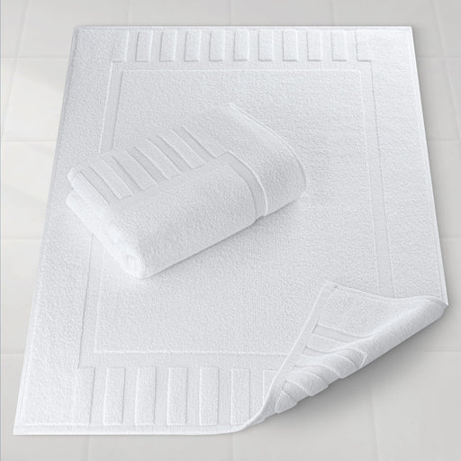 White Classic Luxury Bath Mat Floor Towel Set - Absorbent Cotton Hotel Spa Shower/Bathtub Mats [Not a Bathroom Rug] 22"x34" | 2 Pack | White