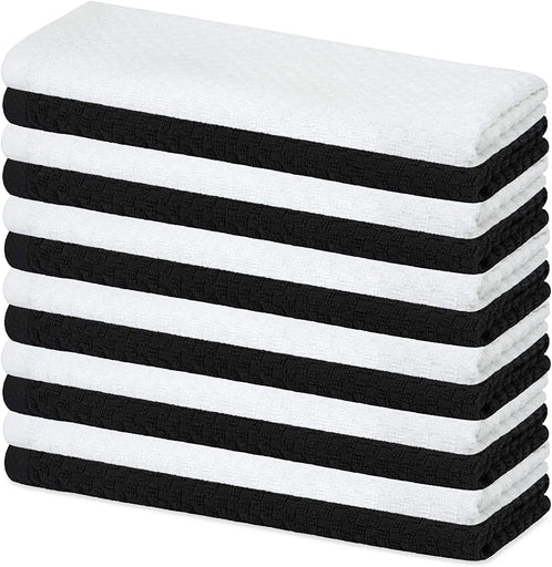 Dish Cloth Black and White Dobby Weave Kitchen Dish Towels | 12x12 | 12 Pack